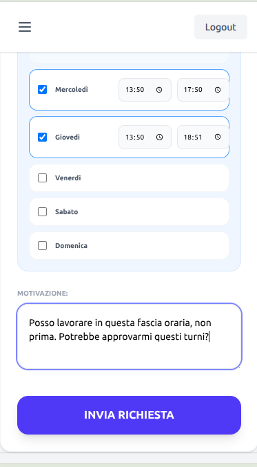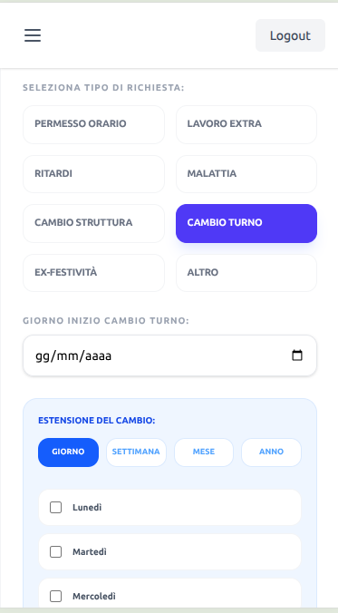 Guia Como criar uma solicitação ou permissão de tipo de mudança de turno.